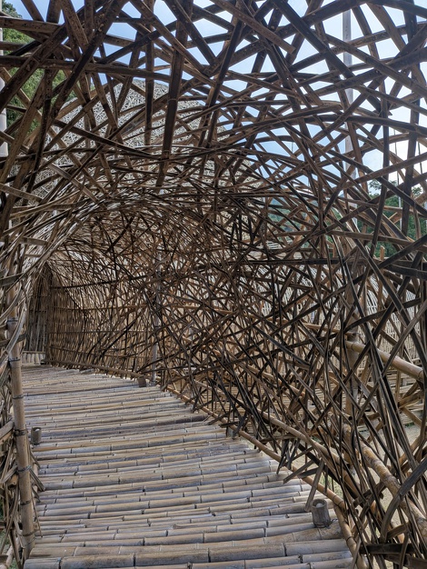 日本館の見た目は木造に見えますがCLTパネルと言われており鉄骨の骨格を間伐材や国産杉を利用して挟み込むような感じのハイブリッド構造になっているとの事でした。