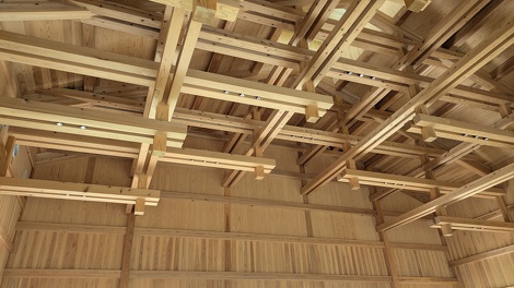 時の納屋のコンセプトは『自然との共生』との事で天井の梁が全て水平となっていて斜めの梁は存在せず釘やボルトも一切目につかない技術はかなり圧巻でした。