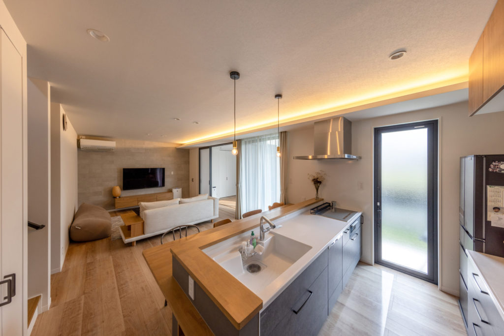 間接照明を採用するには天井や壁を最初に造作しておかないといけませんので、少し余分にご予算をみていただく必要がございます。