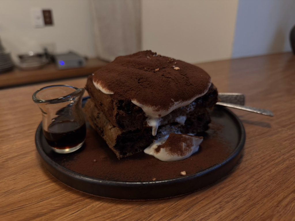 の上いっぱいにクリームとティラミスがかかった贅沢な一品でした。