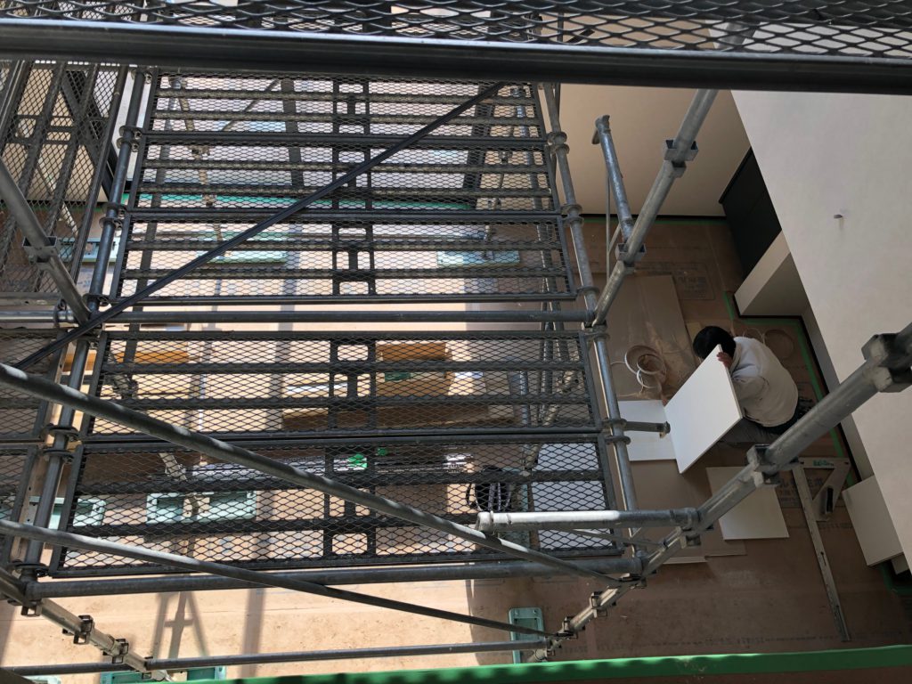 まだ鋼製手すりが付いていないお二階のホールからの風景。