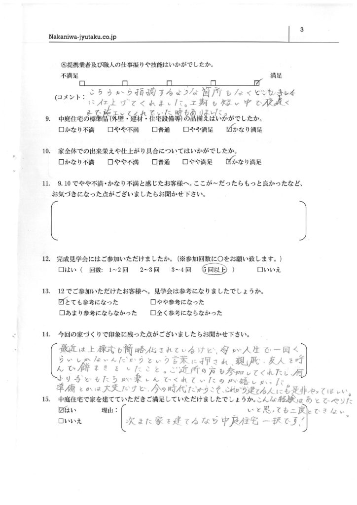 お引渡しの際に、お客様アンケートをご記入いただきました✨