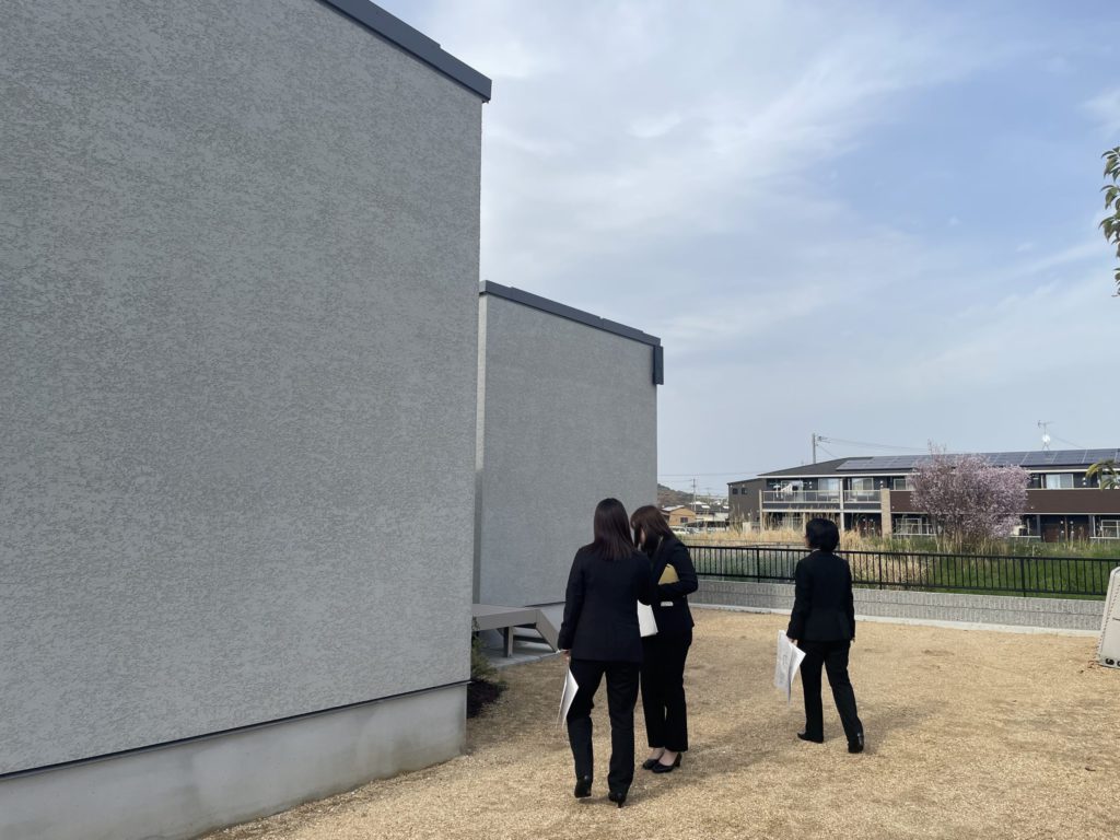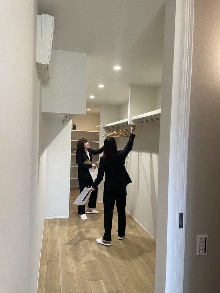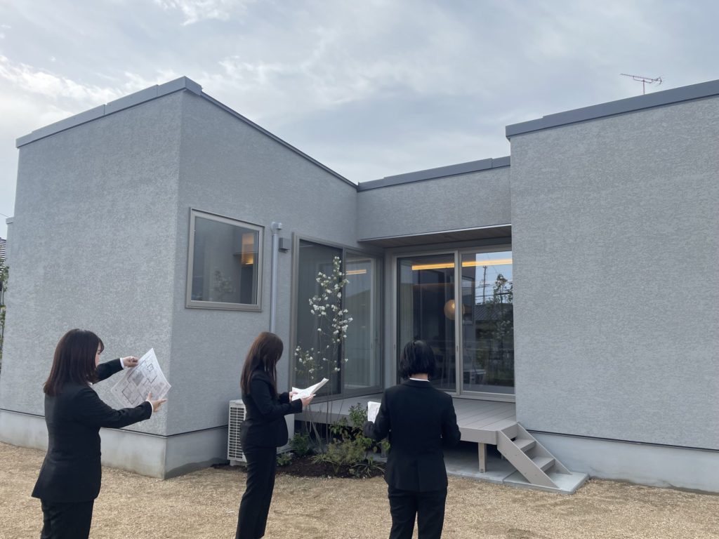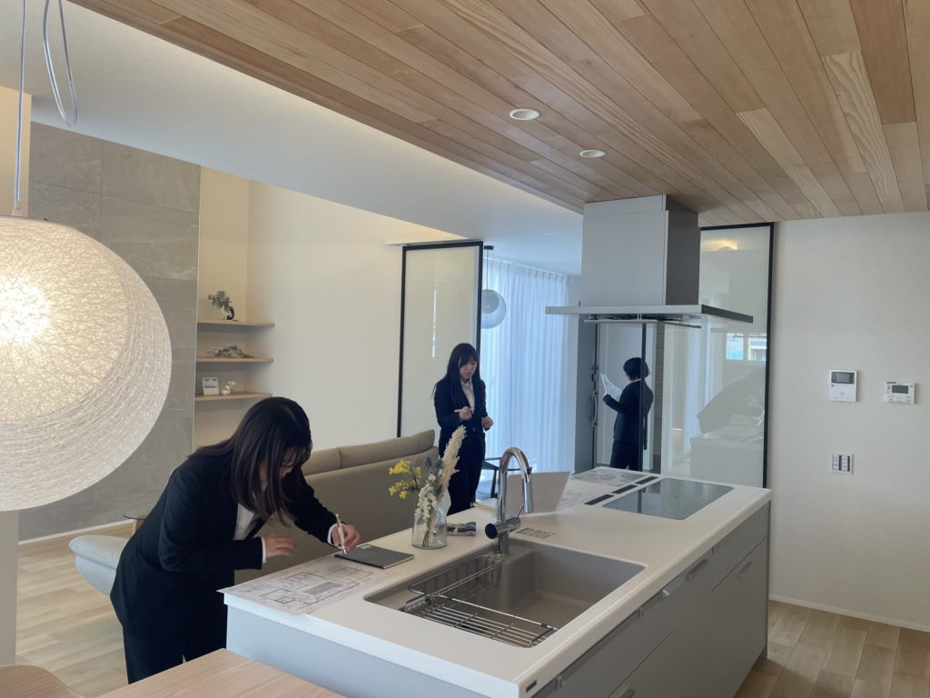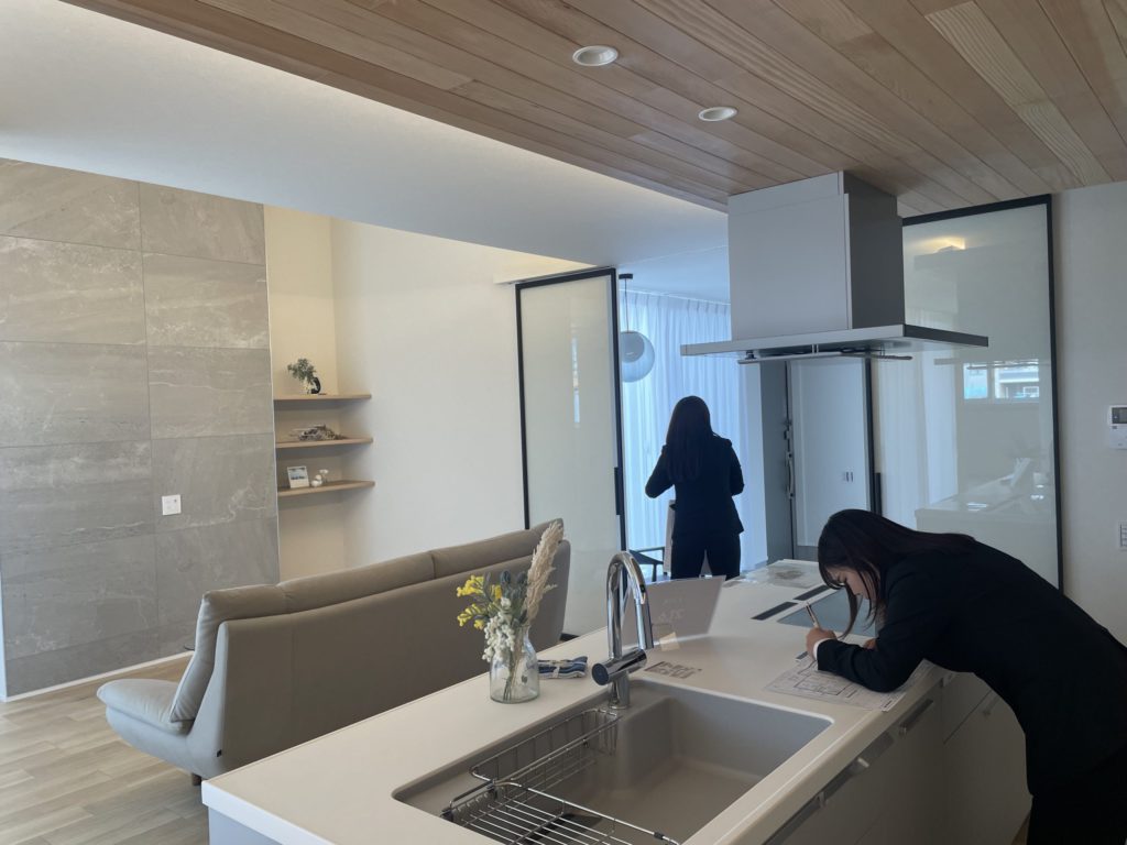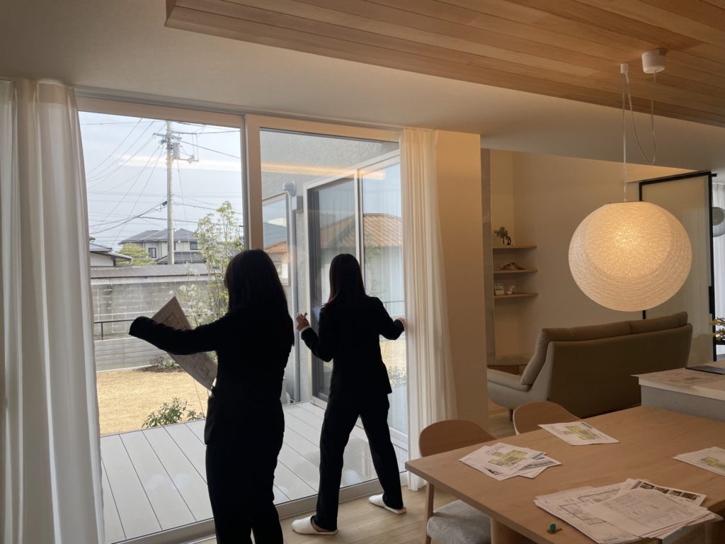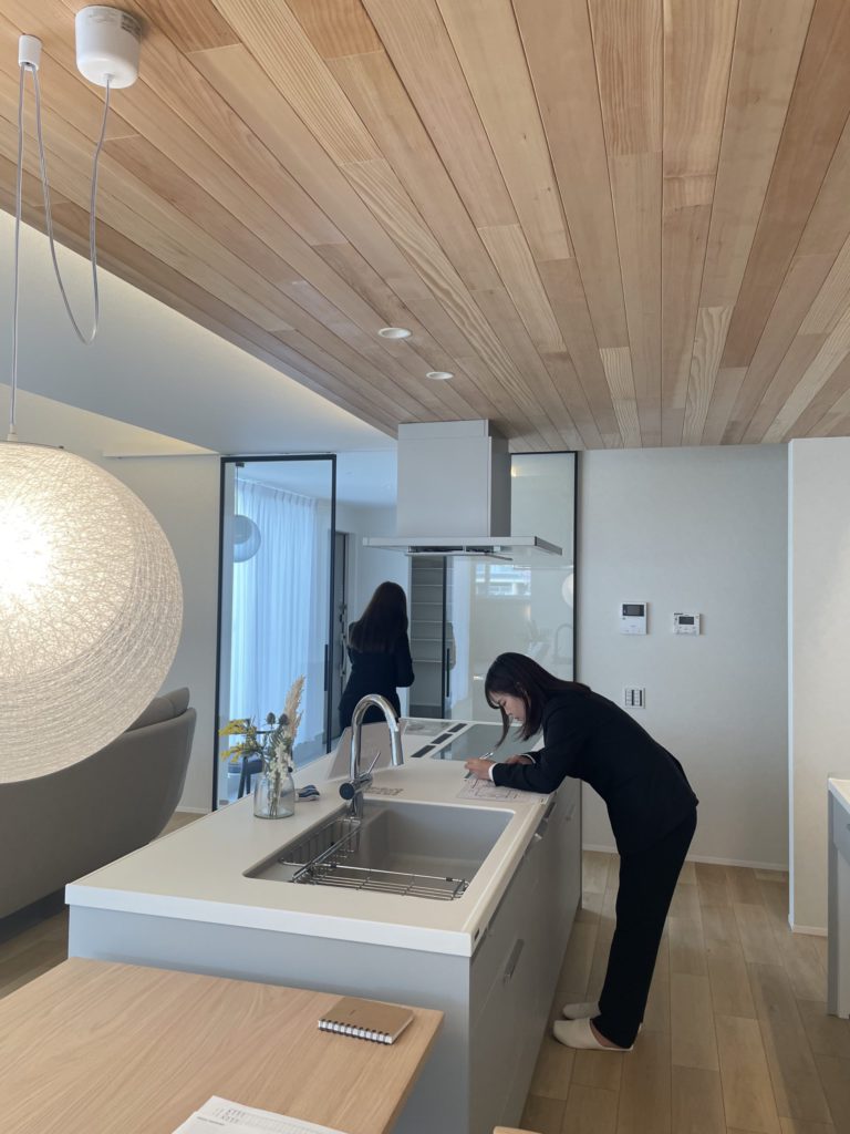 大学時代、建築,デザインを学んできた3名ですが、今のニーズを知ったり、実際に部屋から見える景色を見て窓の取り方に納得したり、図面上で見る広さや天井の高さを体感したり…と、まだまだ新たな発見があったようで👏さらに新たな専門用語も詰め込みました😟