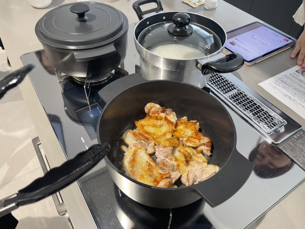 今回は大人気乾太くんの実演を見学させていただき、前回に引き続きガスコンロのデリシアを使って調理したお料理をいただきました🤗