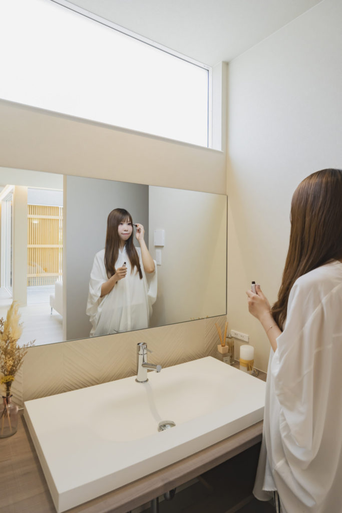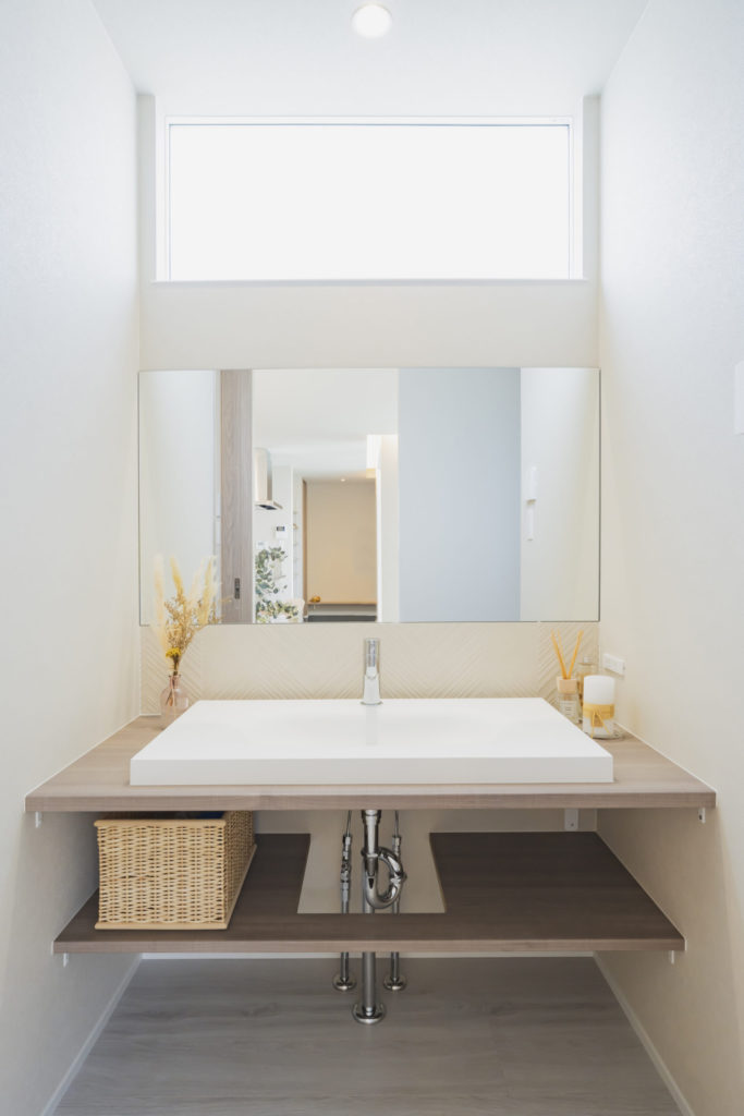 また、洗面スペースやランドリールームにも工夫が満載。家族と来客、それぞれの使いやすさを考慮した動線設計が魅力です。住む人すべてに「ここに住みたい」と思わせる、特別な一邸となっています。