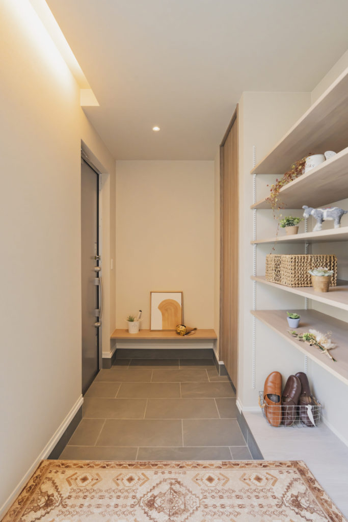 - 上質な空間: 壁紙や内装の色味を統一し、くすんだカラーでホテルライクな雰囲気を実現しています。
