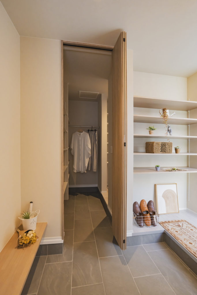 - 土間収納を通してキッチンへの回遊動線を設け、ストレスフリーに。