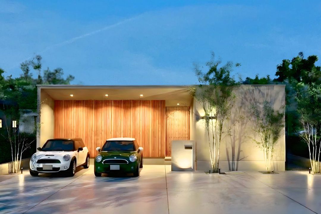 注目は、独立した9帖のガレージ。 大切な車を雨風から守るだけでなく、趣味の道具をメンテナンスしたり、DIYに没頭したりと、大人の遊び心を刺激する秘密基地のような空間です。