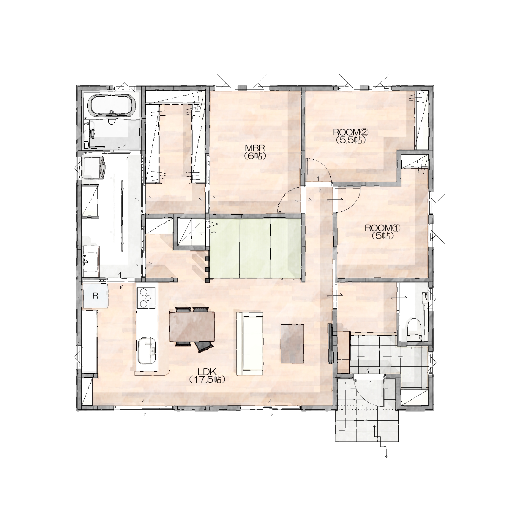 リビング繋がりのタタミコーナーは3帖とコンパクトにすることで