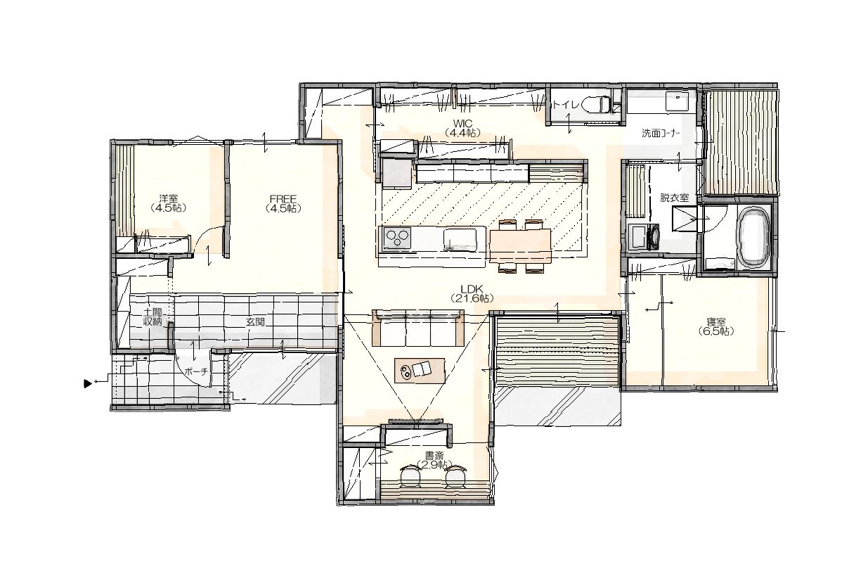 自然と寄り添いながら、豊かに暮らせる平屋の住まいです。