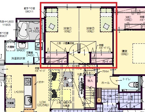子どもが小さいときにはワンルームとして使い、成長後に壁で仕切り2つの部屋にすることができます。後から壁を設置するのは施工上は難しくありませんが、設計段階からプランナーに意向を伝えておきましょう。それに対して、後から壁を撤去するのは構造の面で難しいこともあります。