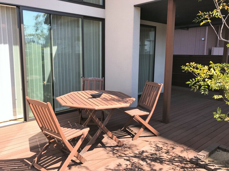 リビングと屋外空間がひと続きになるタイルテラス・ウッドデッキが人気です。子どもの遊び場やバーベキューの場所として活用できます。