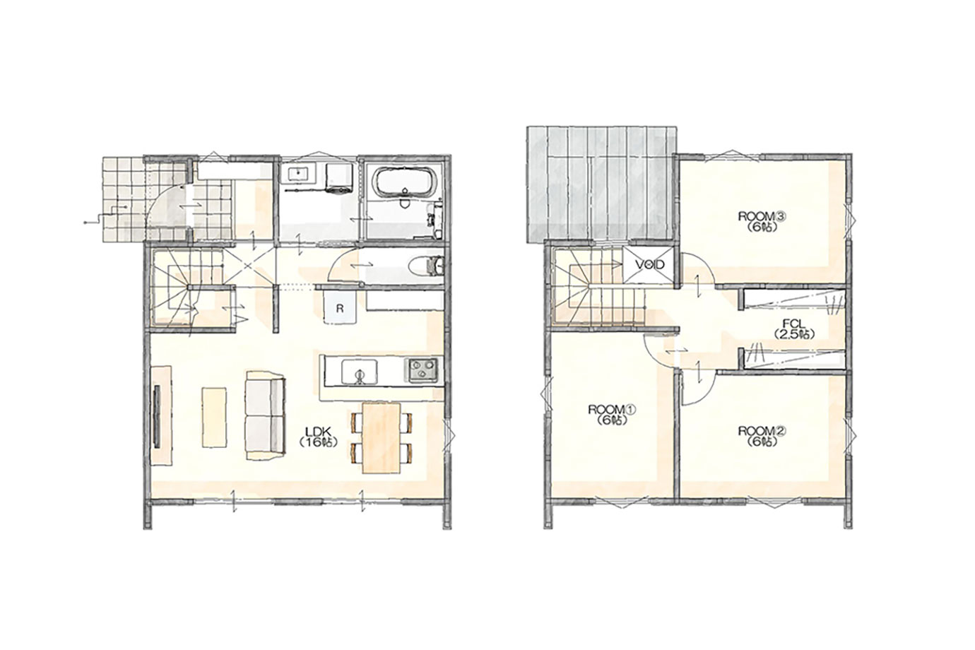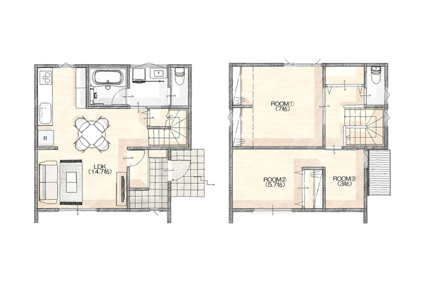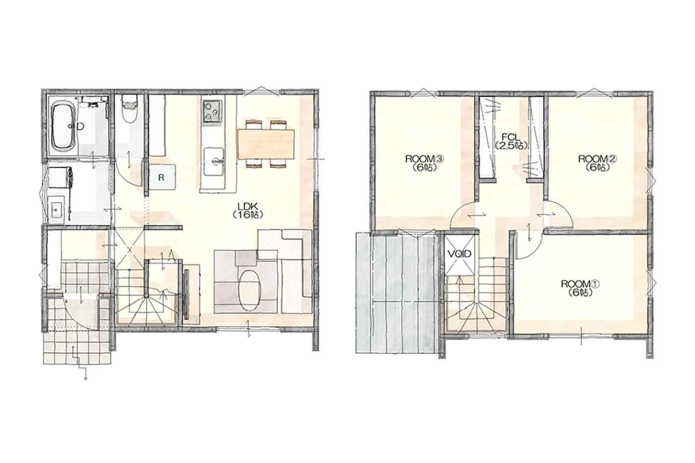 家族が増えても安心の3室を確保したコンパクトな間取りとなっています。