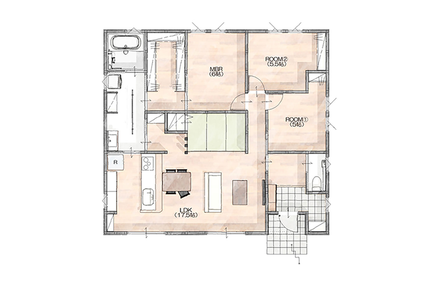 ご家族をあたたかく包み込んでくれる、とてもやさしいカラーコーディネートです。