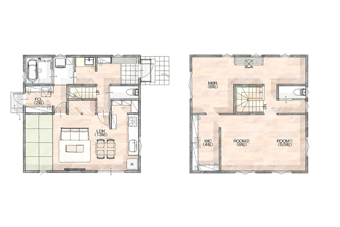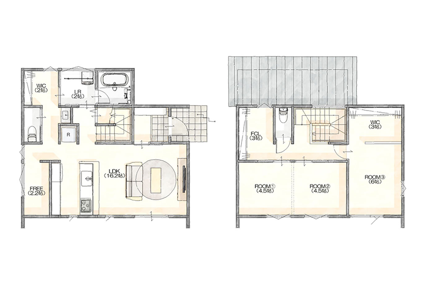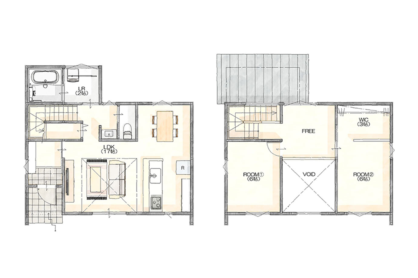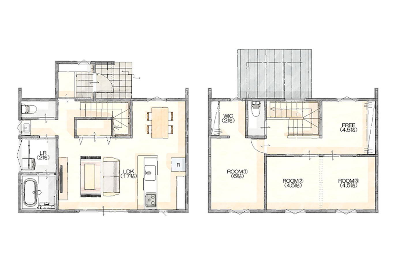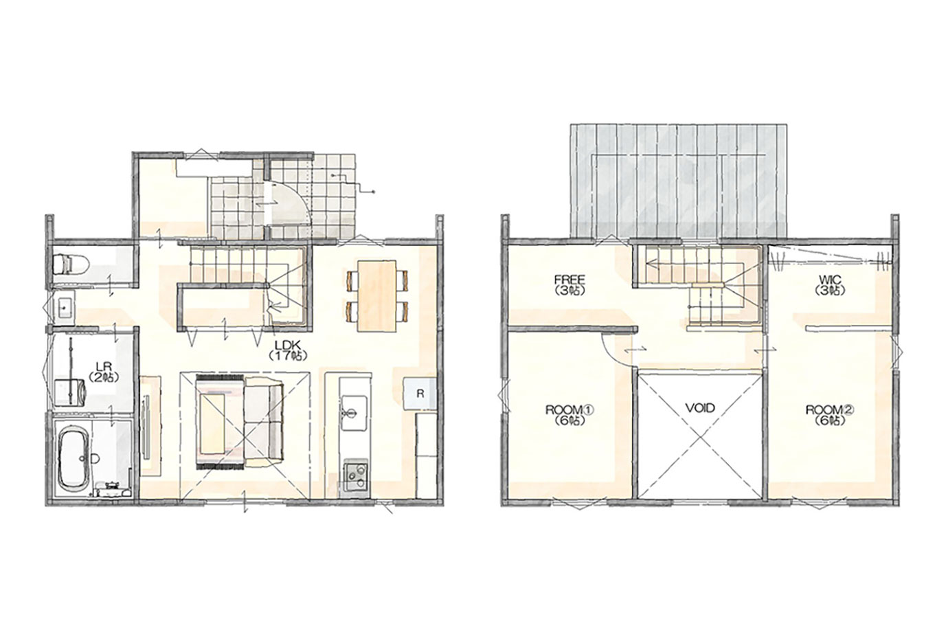 あえて建具をなくし回遊型の間取りは遊び心いっぱいで使い方は無限大です。