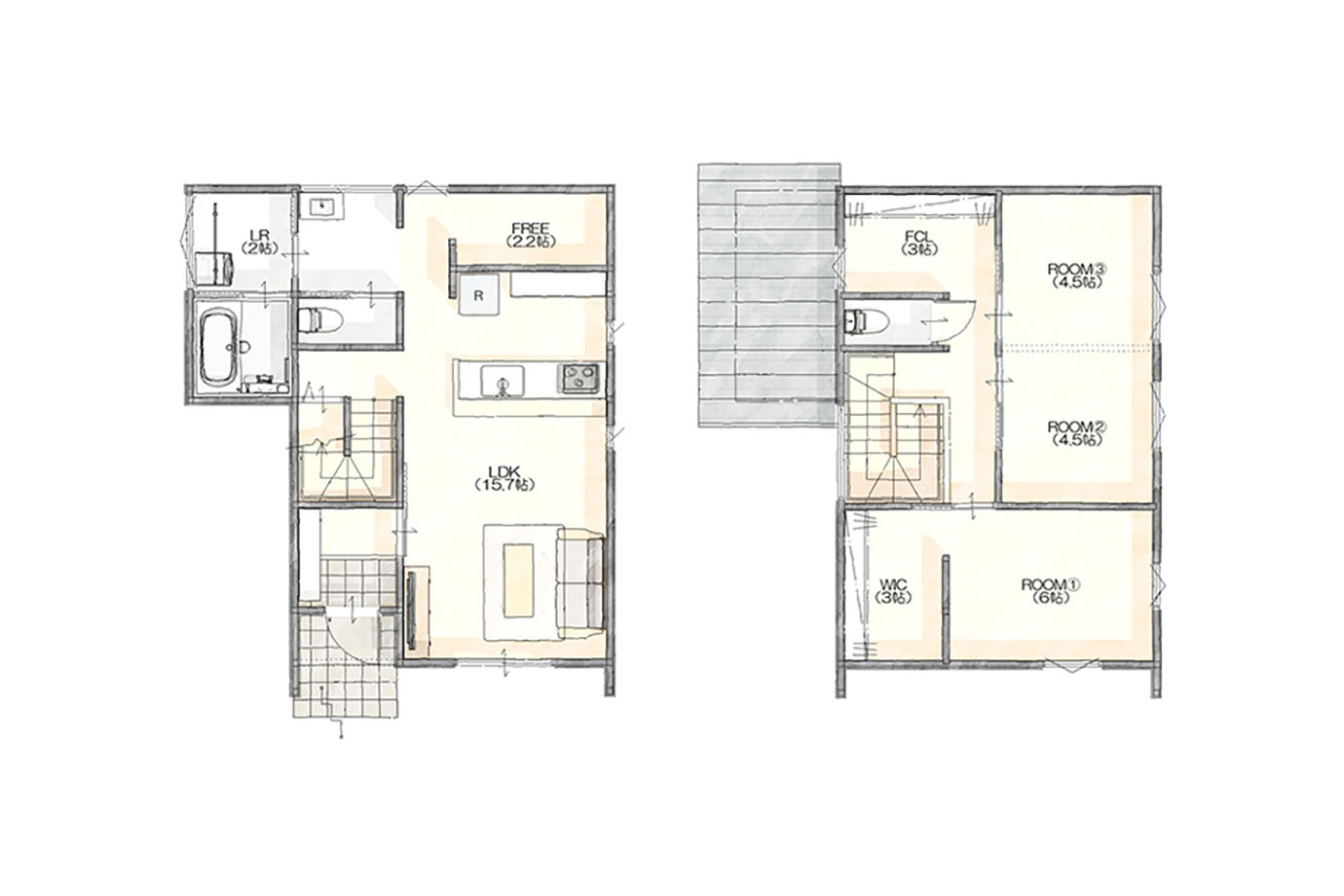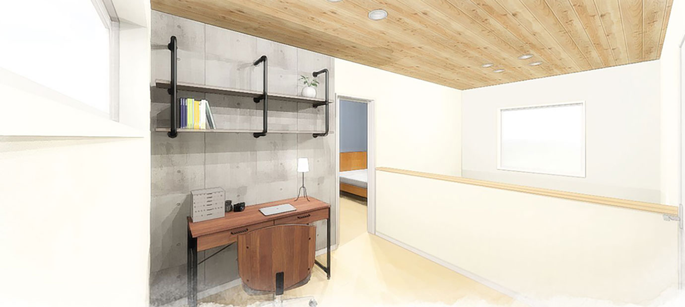 2階の3帖フリースペースは、収納スペースや書斎スペースなど自由自在。