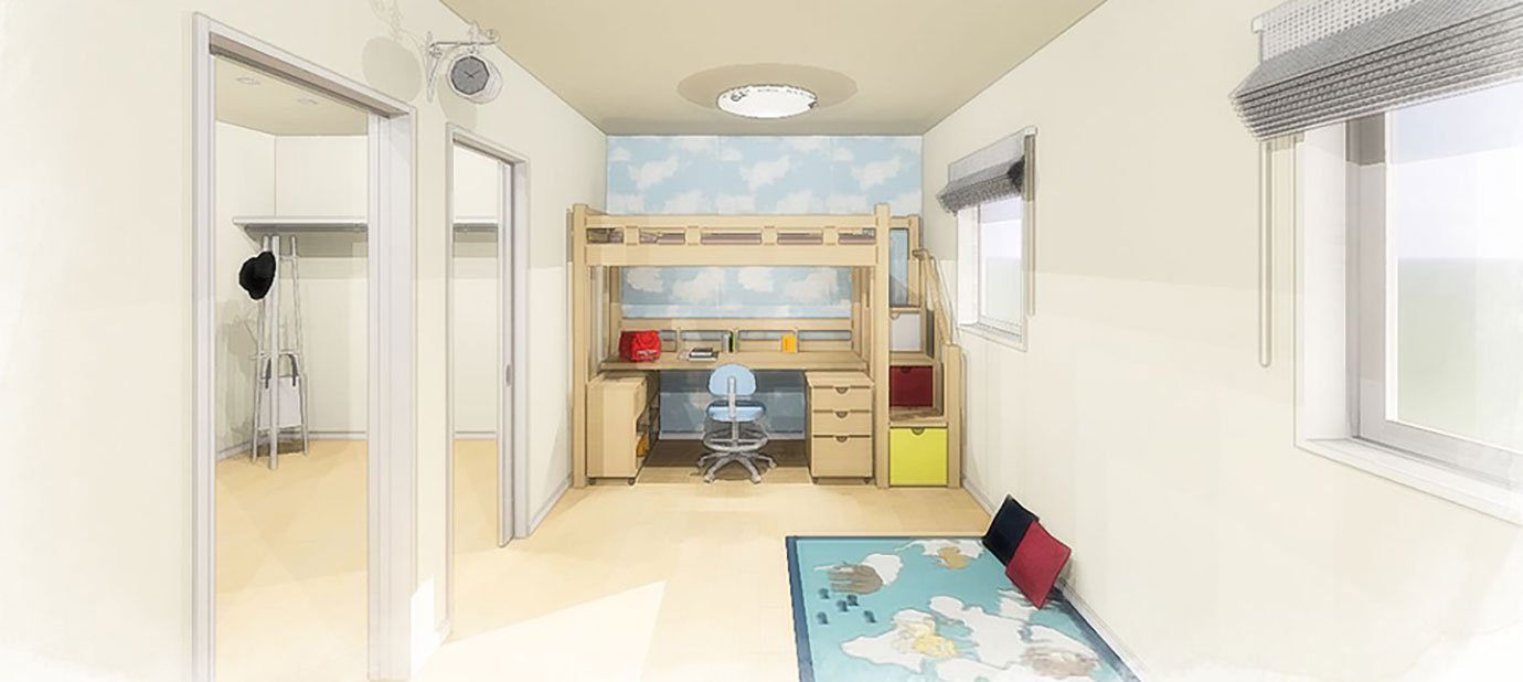 間仕切り可能な2階の洋室は家族が増えても安心設計です。
