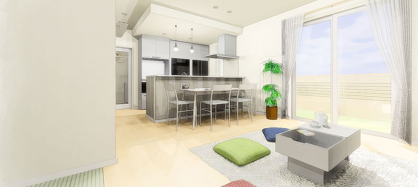 また日中の光もLDKにたくさん取り入れることができ、家族みんなで温かく過ごせそう。