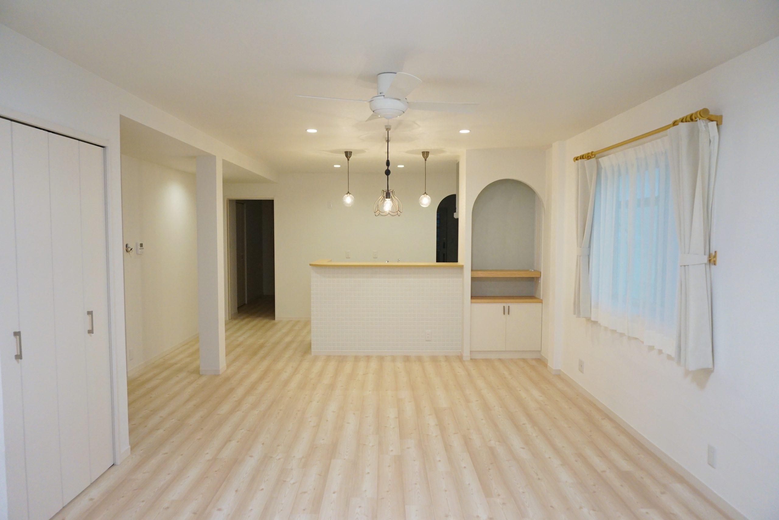 アーチ型の壁を多数取り入れ、北欧テイストには欠かせない曲線を造りました。