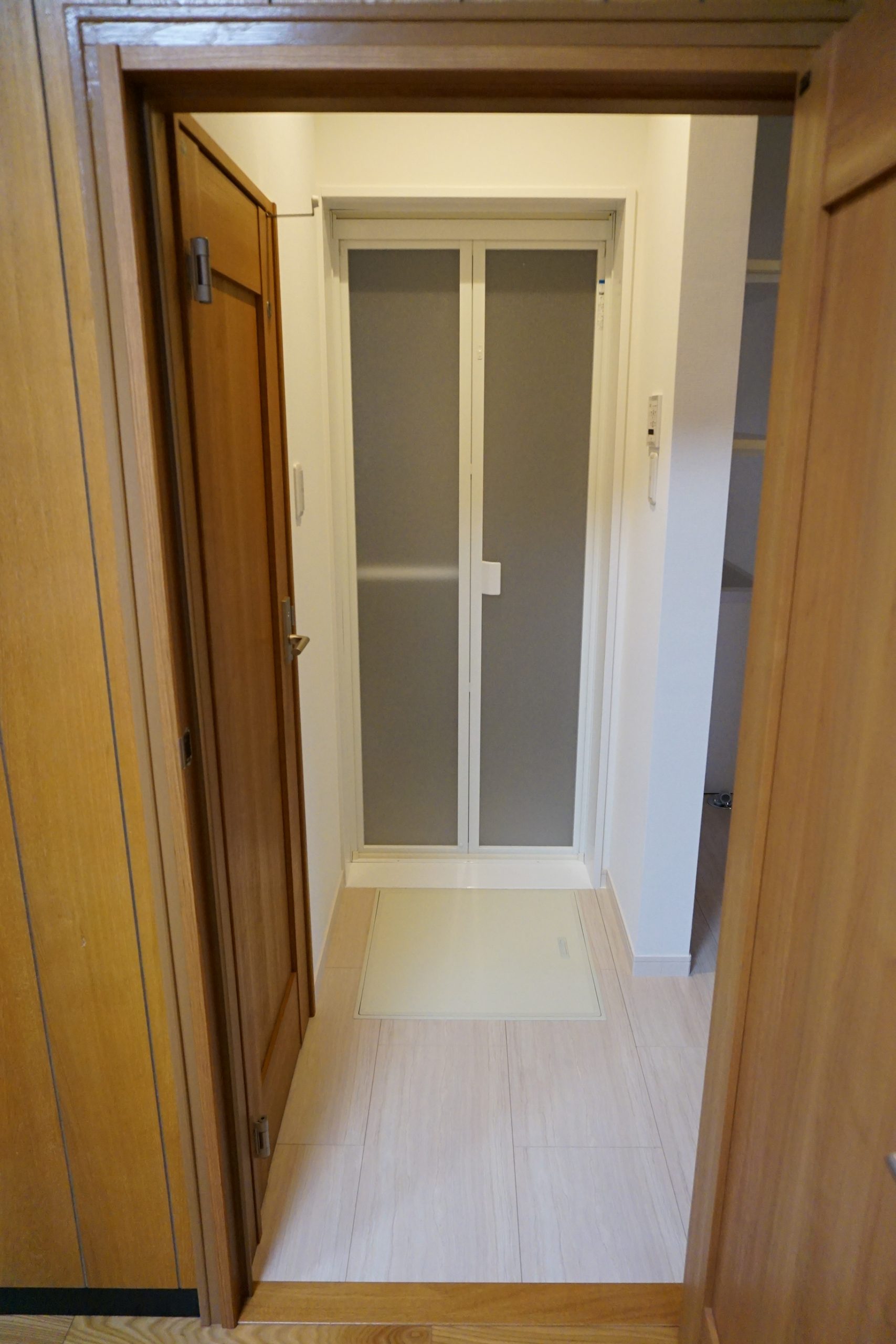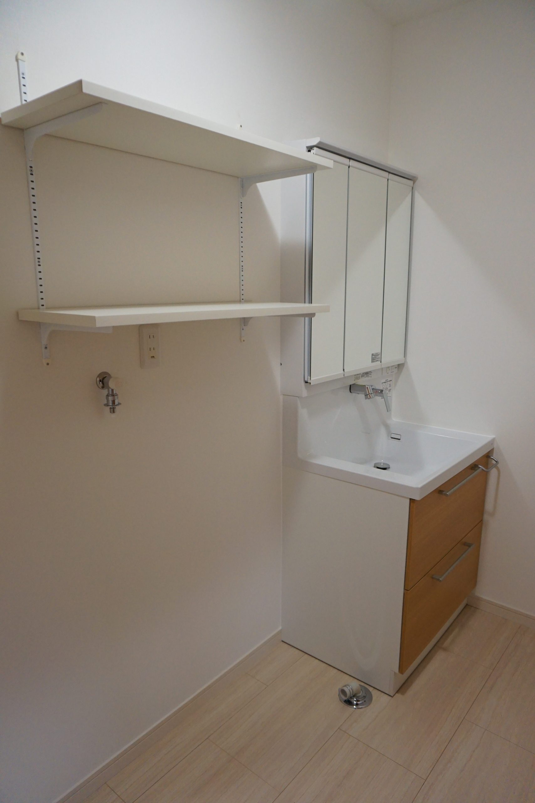 明るく清潔感ある洗面脱衣室・棚取付整理しやすくなりました。