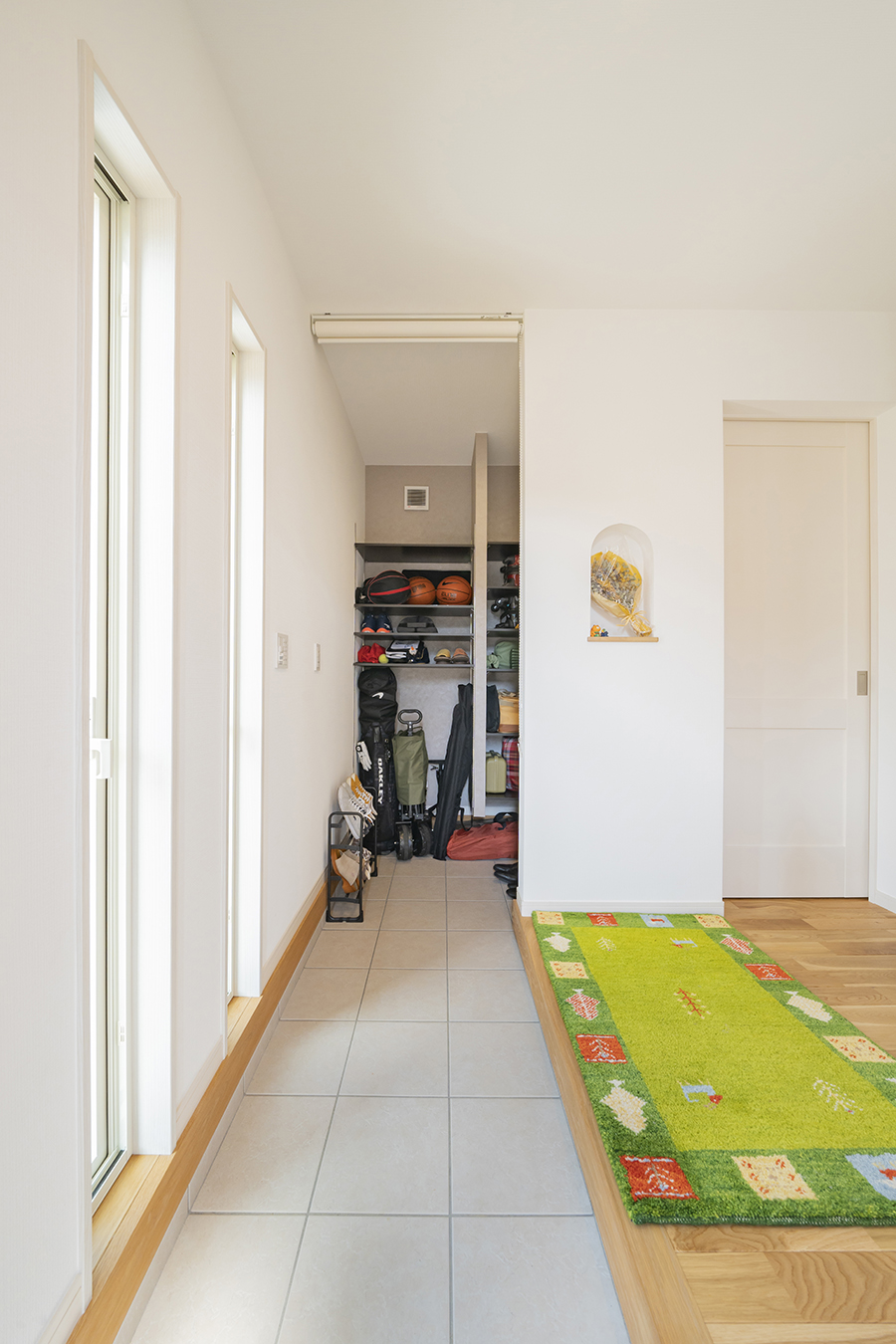 数十社の見学会や見積もりを比較する中で当社展示場へご来場いただきました。耐震性や間取り、快適性にこだわりを持たれるご夫婦のため、油圧式制震ダンパー「エボルツ」を初めて提案し、第1号のご採用をいただいたお客様です。国産ヒノキの床材や断熱材などを気に入っていただき、住んでからは静かな住環境やエアコンのエコ活用にも満足されています。迅速なアフターフォローも高く評価いただき、これからもご家族みんなで明るく楽しい毎日を過ごしていただきたいと願っています!