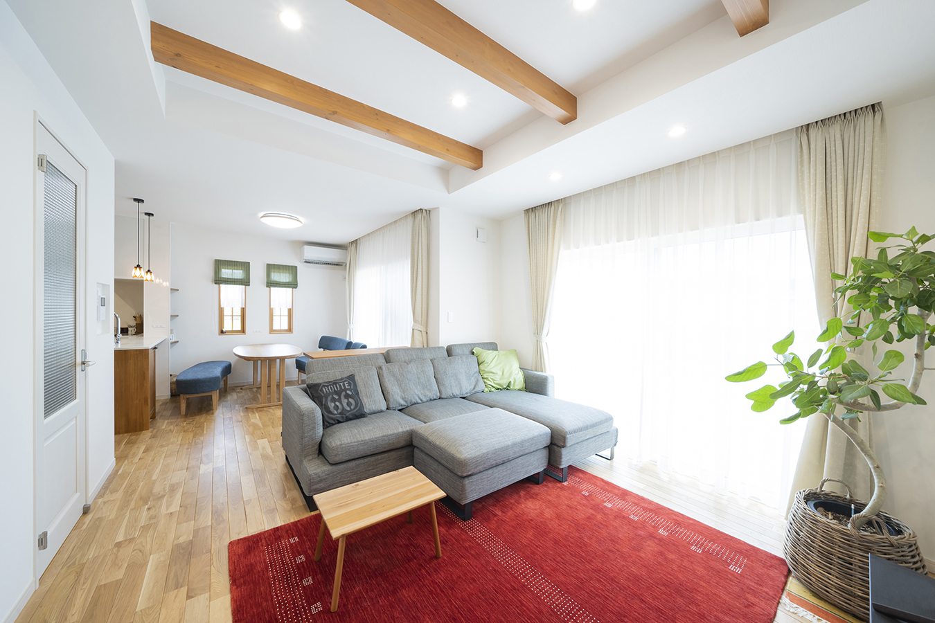 自然光がたっぷりと降り注ぐ明るい空間が特徴のお家。