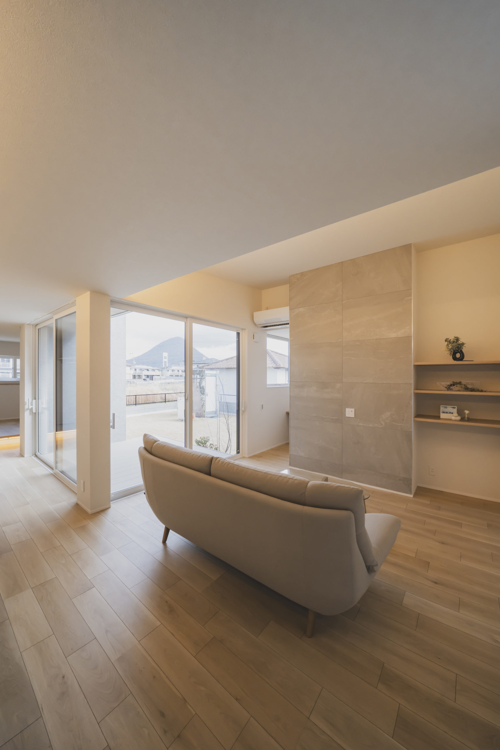 南東にある讃岐富士を眺められる大きな窓は、景色だけでなく夏も冬も快適に過ごせるよう計算されています。